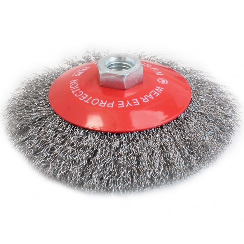 En los trabajos de restauración y mantenimiento, a veces la fuerza bruta no es la respuesta. Si utilizas un disco abrasivo o un cepillo trenzado muy duro sobre una chapa fina de coche, una verja antigua o una pieza de madera, puedes dañar irremediablemente la superficie. Para estos trabajos delicados que requieren precisión y un acabado suave, la herramienta correcta es el cepillo de alambre cónico ondulado 100mm SATRA S-4BBC100.