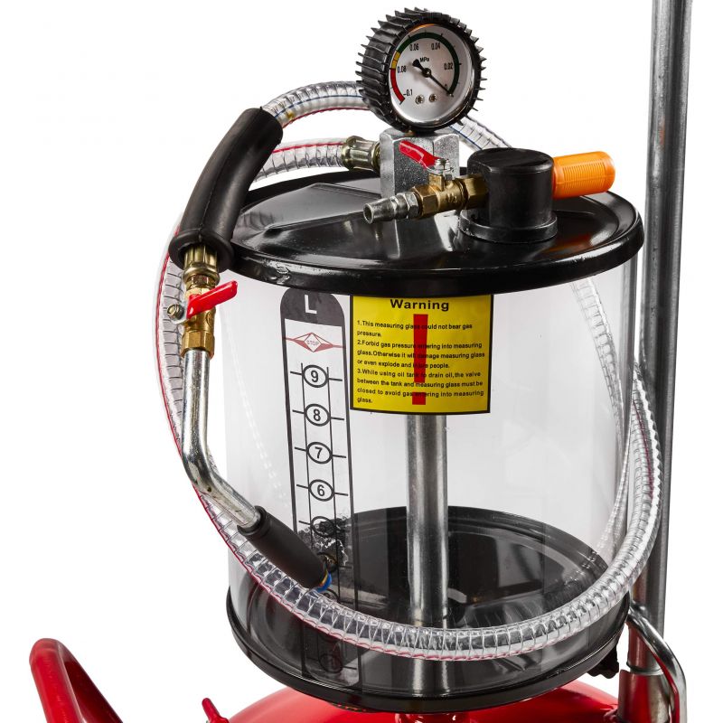 Efectivamente. La bandeja superior tipo embudo (con su tubo regulable en altura) permite usar el dispositivo como un recogedor por gravedad tradicional. Puedes situarlo debajo del elevador y abrir el tapón del cárter para que el aceite caiga libremente sobre la bandeja, ampliando aún más las opciones de trabajo de este versátil equipo.