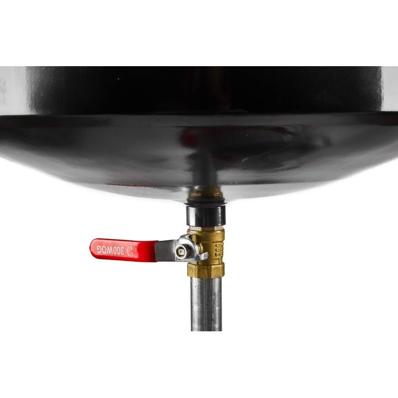 Mover 80 litros de líquido espeso no es tarea fácil, por lo que la ergonomía se ha cuidado al detalle. El cilindro descansa sobre un robusto chasis con dos grandes ruedas traseras fijas y dos ruedas delanteras direccionales, rematado con un asa perimetral que facilita girar la máquina incluso en los espacios más reducidos entre elevadores. Además, cuando llega el momento de vaciar la máquina en el contenedor de punto limpio, no tendrás que hacer esfuerzos físicos ni volcar el aparato. El equipo cuenta con un sistema de auto-vaciado presurizado; conectando el aire a la válvula específica, el propio tanque empuja el aceite usado a través de la manguera de descarga hacia tu bidón de reciclaje ecológico.