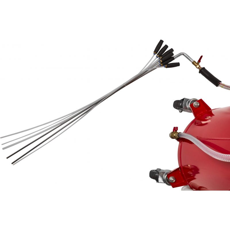 La compatibilidad es clave en un taller multimarca. Por eso, este equipo se suministra con un estuche que incluye 6 sondas de extracción de diferentes diámetros y materiales. Incluye 2 sondas metálicas rígidas y 4 sondas de nailon flexibles de diferentes grosores (que permiten velocidades de recogida de 0,8 l/min con la de 4,5 mm hasta unos impresionantes 1,6 l/min con la sonda de 6,5 mm). Gracias a esta variedad, siempre tendrás la manguera perfecta para introducir por el orificio de la varilla de nivel de aceite de cualquier marca de coche, furgoneta o maquinaria agrícola, asegurando que llegas hasta el punto más bajo del cárter sin atascos ni daños.