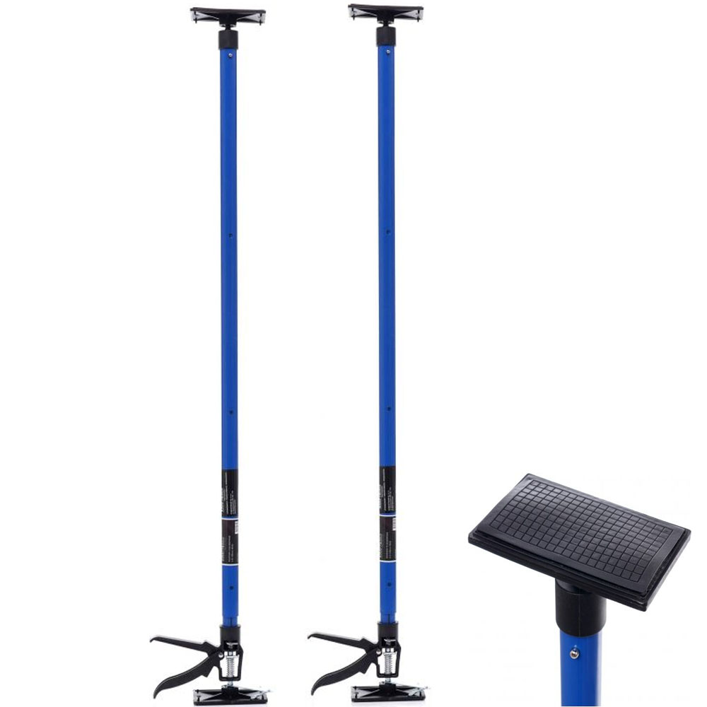 Cada puntal está fabricado con tubos de acero de alta resistencia que permiten ejercer una fuerza de presión de hasta 30 kg. Esta capacidad es más que suficiente para sostener de forma segura una placa de yeso laminado estándar de 120×250 cm mientras se fija a los perfiles. El sistema de gatillo metálico permite un bloqueo firme, evitando que el soporte pierda altura accidentalmente durante el trabajo, algo vital para prevenir accidentes y desperdicio de material.