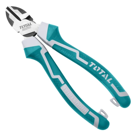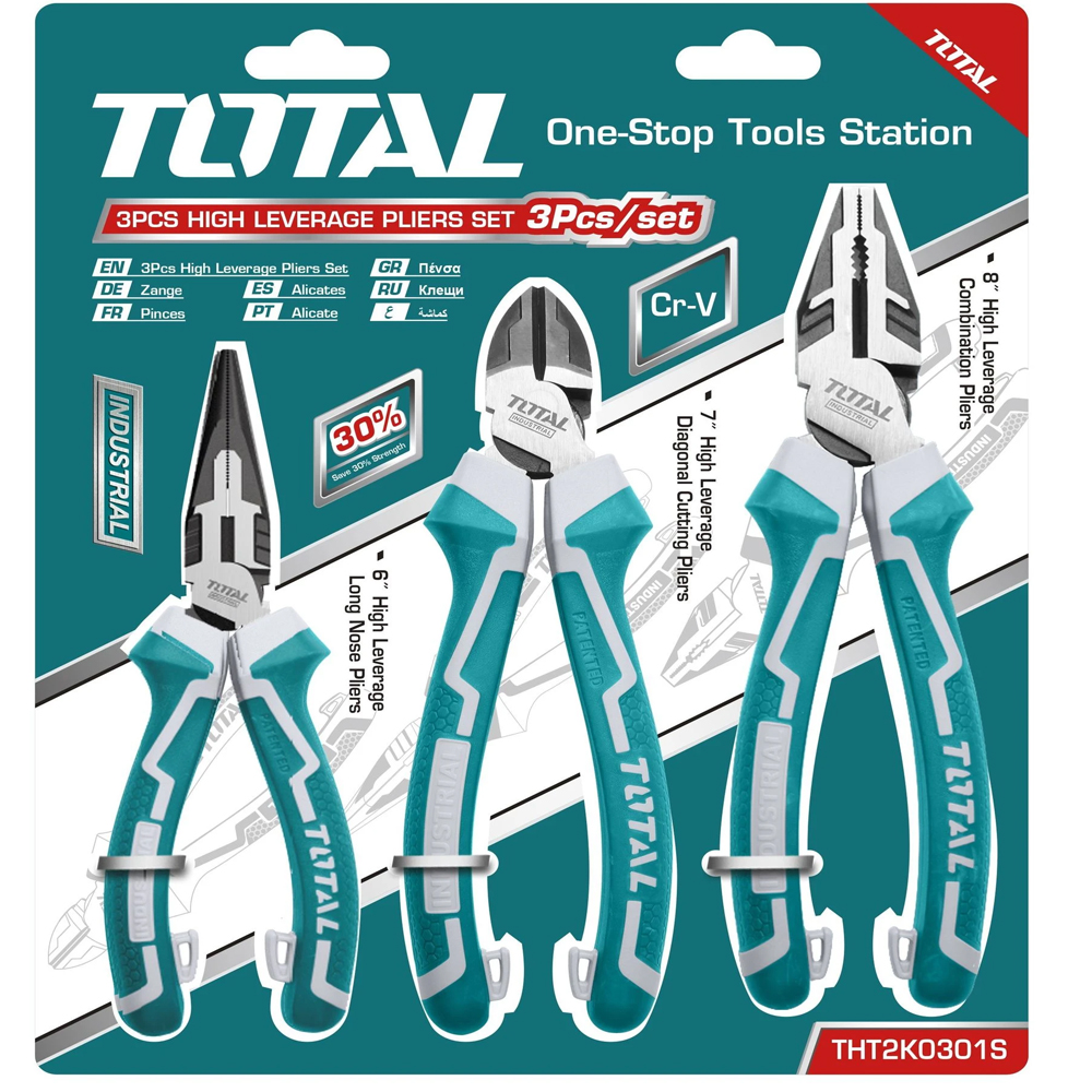 En una jornada laboral larga, la fatiga de mano (túnel carpiano) es un problema real para electricistas y mecánicos. Cortar cables gruesos o alambres de acero con unos alicates estándar requiere mucha fuerza. La solución ergonómica es el juego de alicates de alto rendimiento TOTAL THT2K0301S.