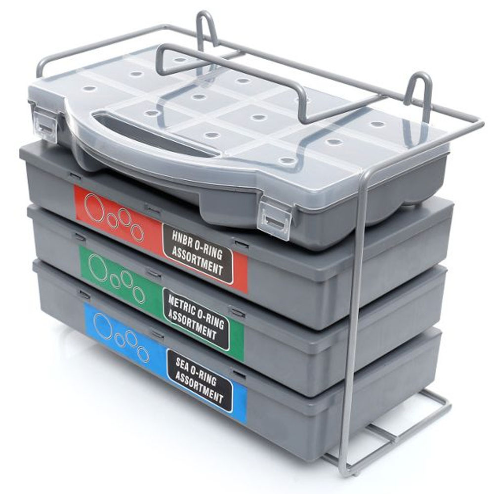 Un juego de juntas tóricas de tal magnitud sería inútil sin un sistema de organización lógica. El KD10505 se suministra con un estante metálico de diseño vertical que alberga los cuatro clasificadores (los tres juegos activos más un clasificador vacío para personalización). Cada estuche del juego de juntas tóricas cuenta con compartimentos individuales etiquetados con la medida exacta, permitiendo una identificación visual instantánea. Este orden no solo mejora la imagen profesional del taller, sino que reduce drásticamente los tiempos de inactividad durante las reparaciones críticas, permitiendo que el juego de juntas tóricas sea una extensión eficiente de su flujo de trabajo.