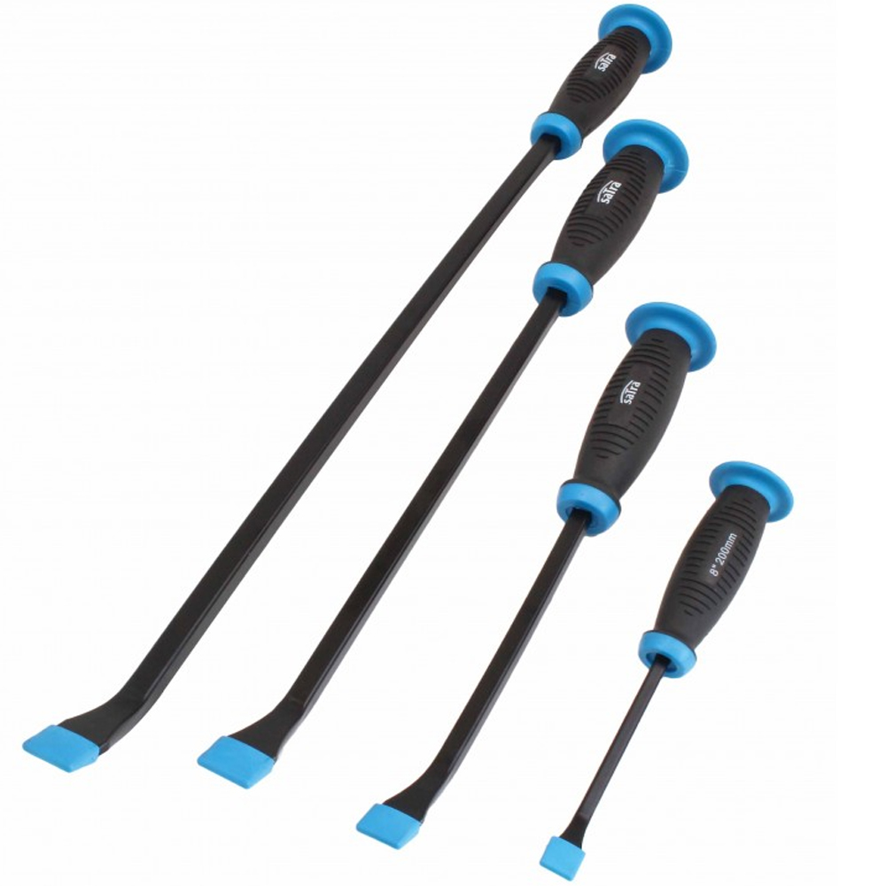- Palanca de 600mm (24″): Ancho de punta 20mm. La «bestia» del kit. Su longitud permite ejercer una fuerza enorme con poco esfuerzo físico.