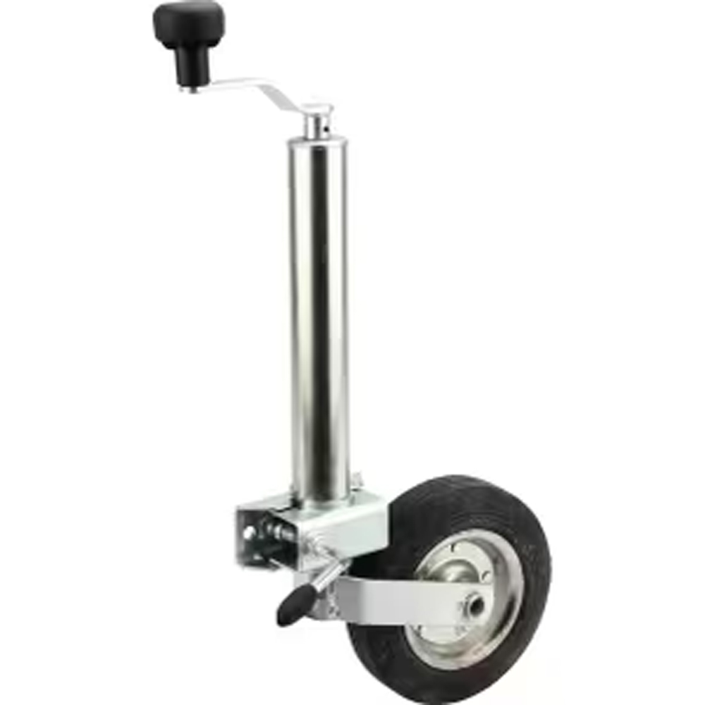 Este componente es vital para tres funciones: sostener el remolque cuando está aparcado, subir y bajar el cabezal de enganche sobre la bola del coche, y permitir mover el remolque empujándolo manualmente. Nuestra rueda jockey para remolque 48mm está fabricada en acero galvanizado para resistir la lluvia y la intemperie sin oxidarse, garantizando años de servicio.