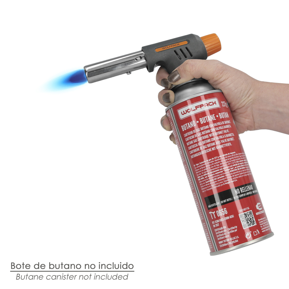 Pocas herramientas son tan versátiles como un buen soplete. Lo mismo te sirve para reparar una fuga de agua en el baño que para dar el toque final a un postre gourmet. El soplete de gas con encendido piezoeléctrico de Wolfpack (Ref. 02650200) es el líder de su categoría por su fiabilidad, su facilidad de uso y su seguridad.
